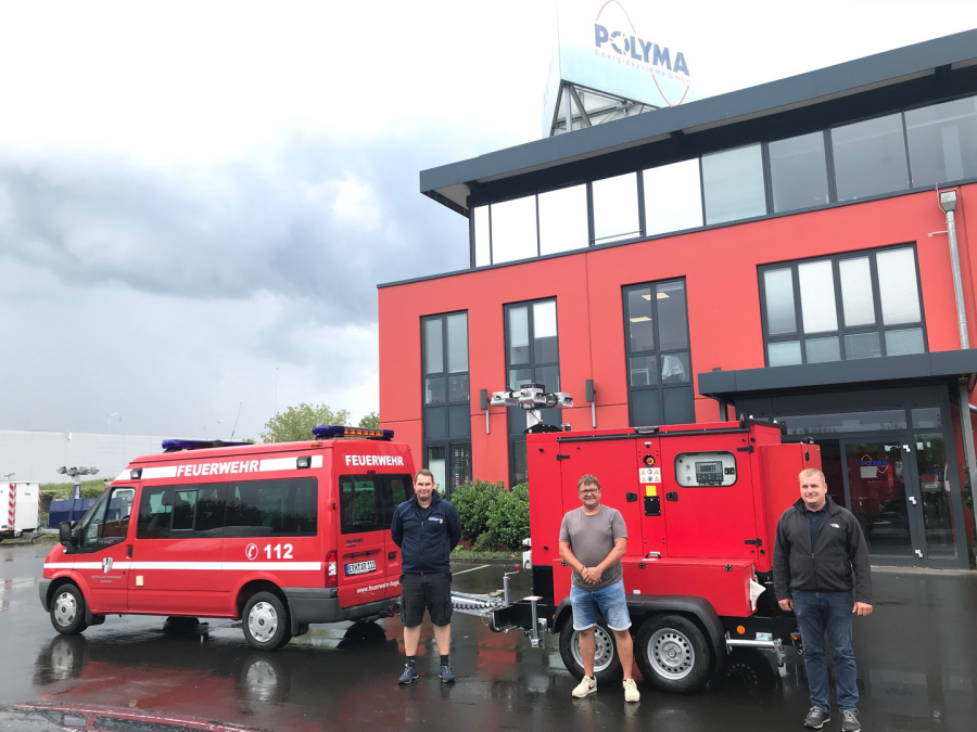 Der mobile Stromerzeuger von der Firma Polyma Energiesysteme GmbH dient zur Notstromversorung von systemrelevanten Gebäuden. Für die Einspeisung besitzt das Aggregat eine Netzumschaltung für IT-System (Inselbetrieb) und TN-System (Einspeisbetrieb). Zur Beleuchtung kann ein integrierter Lichtmast pneumatisch ausgefahren werden. Mit einer Fernbedienung kann das elektrisch verstellbare Lichtkreuz bestehend aus 4 LED-Flutlicht-Scheinwerfern zur kompletten Umfeldbeleuchtung genutzt werden.