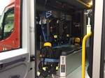 Im Mannschaftsraum befinden sich für den Angriffs- und Sicherungstrupp Pressluftatmer, 2 davon direkt am Sitz.