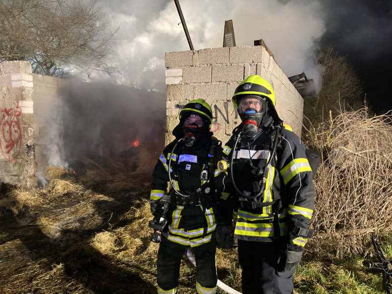 Fünf unserer Kameraden der FF Hagenau waren unter schwerem Atemschutz zusammen mit anderen Rettungskräften bis in den Vormittag hinein mit den Löscharbeiten der mit Stroh gefüllten Scheune beschäftigt.