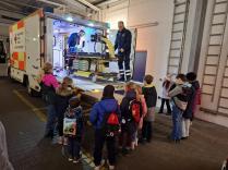 den Kindern die Zusammenarbeit zwischen Feuerwehr und Polizei näher gebracht hat.